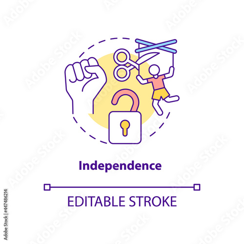 Independence and autonomy concept icon. Humanitarian aid political, economic, military sovereignty abstract idea thin line illustration. Vector isolated outline color drawing. Editable stroke