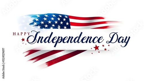Independence Day card with Fourth of July lettering and the USA flag. Vector illustration on a white backdrop.