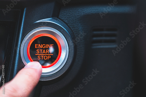 Index finger is going to press the car start engine button.