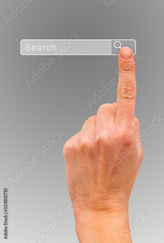Index finger of a hand points to the search field