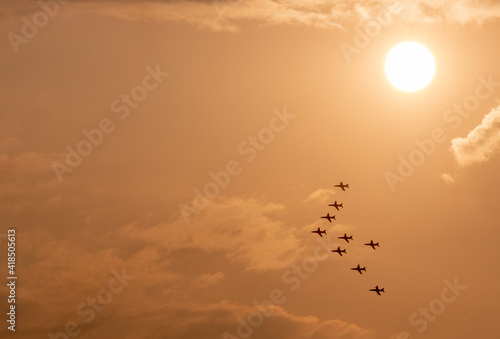 Indian Air Force Surya Kiran Aerobatic Team performs at an air show
