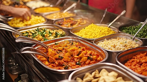 Indian dishes: Butter Chicken, Palak Paneer, Biryani, Vegetable Curry, Dal, Papad, and saffron rice on a vibrant spread for flavorful cuisine lovers.