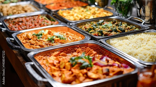 Indian dishes: Butter Chicken, Palak Paneer, Biryani, Vegetable Curry, Dal, Papad, and saffron rice on a vibrant spread for flavorful cuisine lovers.