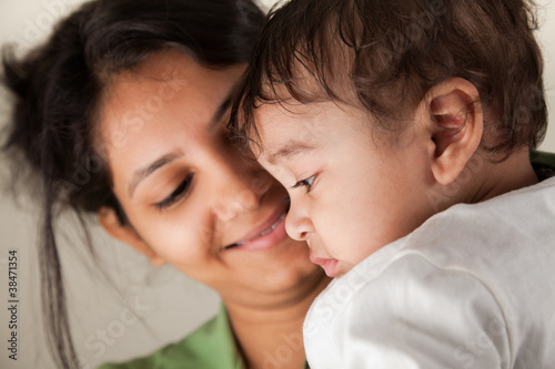 Indian mother and baby smiling
