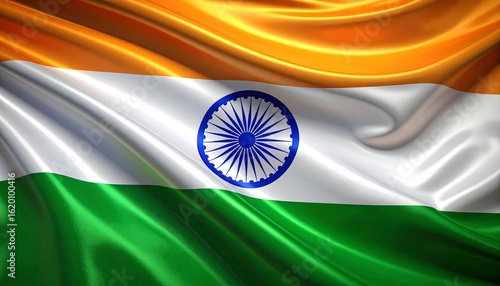 "Indian national flag with saffron, white, and green stripes and navy blue Ashoka Chakra, isolated on white background for patriotic or cultural visuals."
