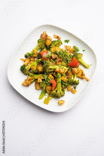Indian style Broccoli And Aloo Poriyal or South Indian Broccoli And Potato Stir Fry vegetable recipe