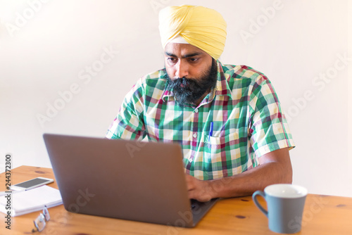 Indian with turban working with his laptop