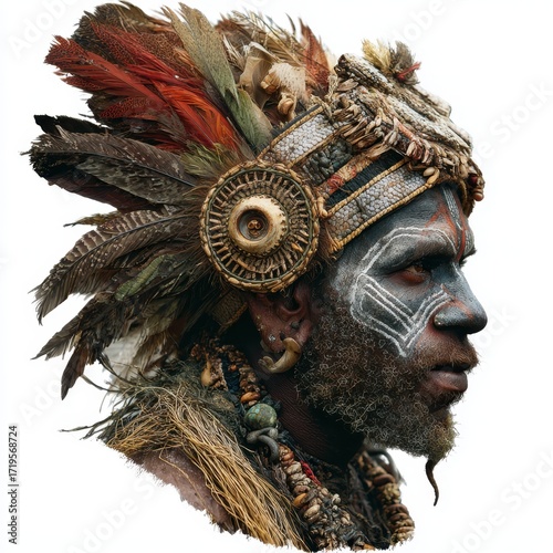 Indigenous man with traditional headdress and face paint