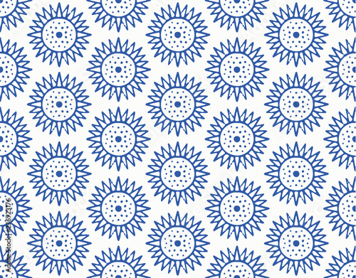 Indigo blue hand drawn vector seamless pattern. Porcelain - style surface design for fabric, wrapping paper or backdrop.