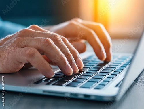 Individual Examining Phishing Email on Laptop with Focused Hands in a Bright Room Setting
