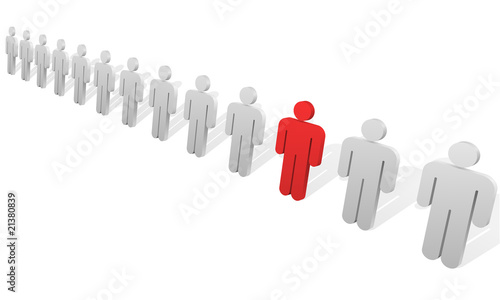 Individuality concept. Red figure in the row of white ones