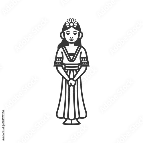 indonesian balines women wearing payas nista traditional clothing minimalist line art icon logo