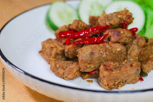Indonesian Food - Tempeh Sweet Soy Sauce or Orek Tempe. Top View with Copy Space for Advertisement