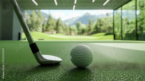 Indoor Golf Driving Range with Virtual Landscape AI generated illustration