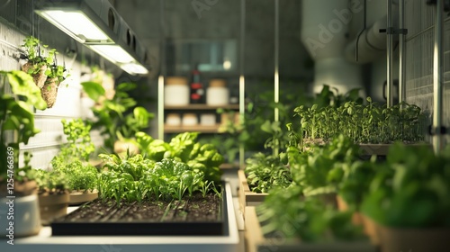 Indoor hydroponic garden with lush greenery and led grow lights