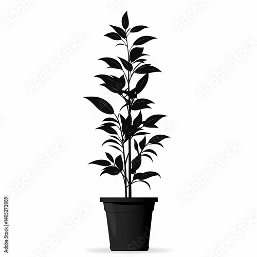 Indoor Plant Silhouette. Black and White Potted Flora for Modern Eco-Friendly Home Decor