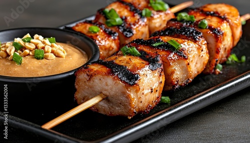 Indulge in the Exquisite Flavors of Gourmet Thai Peanut Chicken Skewers, Grilled to Perfection and Served with a Rich and Creamy Peanut Dipping Sauce These delectable skewers offer a harmonious blend