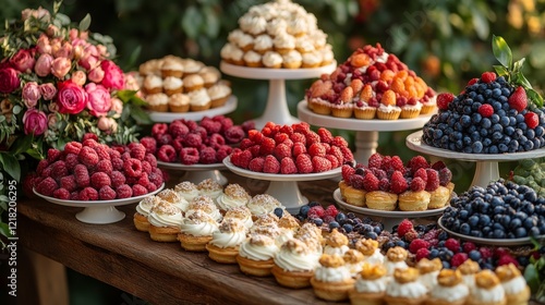 Indulgent Display of Éclairs on Decadent Dessert Table Overflowing with Temptation and Sweet Delights