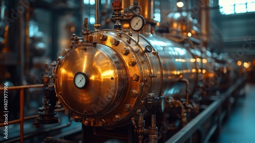 industrial boiler a sizable metal tank used to create heat,steam in industrial environments ensuring efficient operation of factories plants,energy systems,stock photo