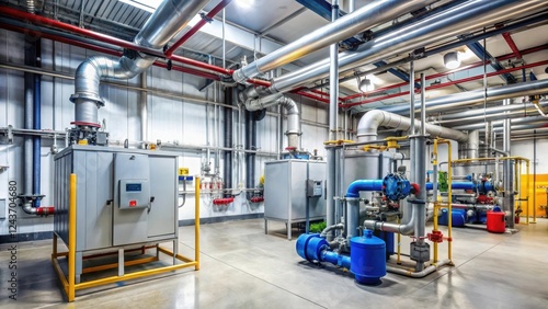 Industrial boiler room with gas-powered heating system and pipes , gas heating, boiler room, gas heating, boiler room