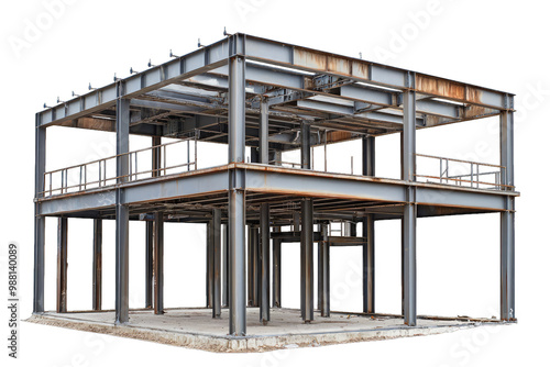 Industrial building frame showcasing modern architecture and metal construction techniques in an open space.