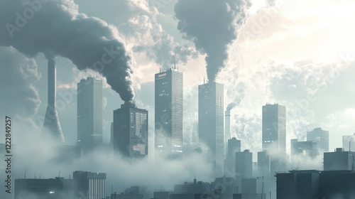 Industrial chimneys releasing smoke, polluted air, 3D illustration.