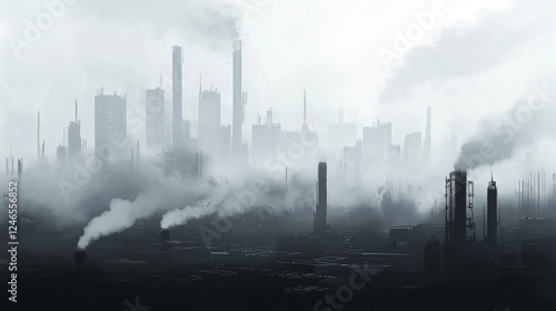 Industrial Cityscape shrouded in fog and pollution