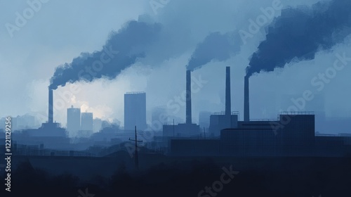 Industrial Cityscape Smog Filled Dawn Sky
