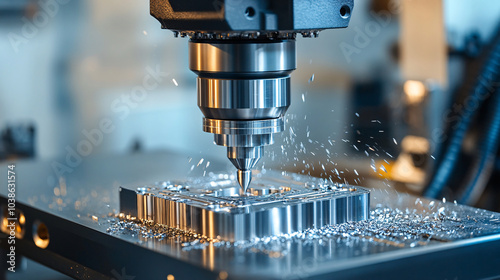 Industrial CNC Milling Machine Cutting Metal With Sparks
