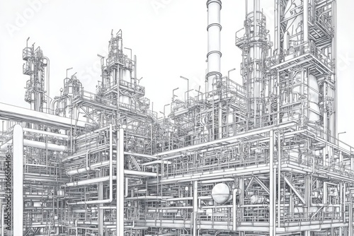 Industrial Complex: A Sketch of Interconnected Towers and Pipes