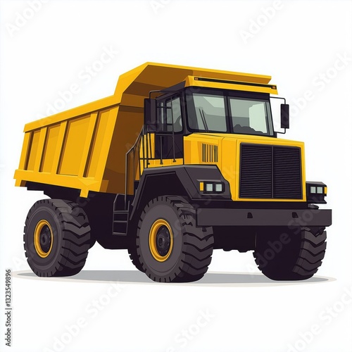 Industrial Construction: Yellow Dump Truck Vector Illustration Showcasing Heavy Machinery in Action