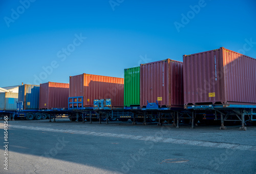 Industrial container cargo freight on truck