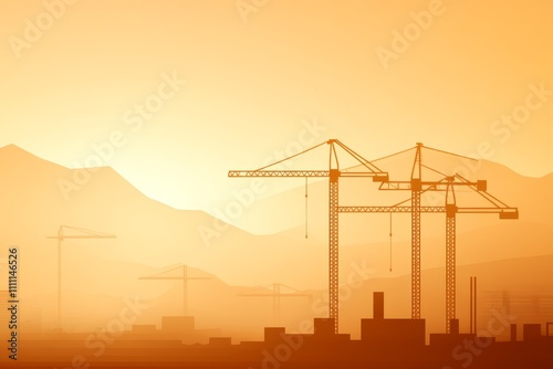 Industrial cranes at construction sites, lifting cargo and building materials efficiently.