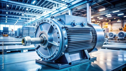 Industrial electric motor with gears in a factory environment