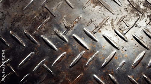 "Industrial Elegance: Intimate View of a Metal Plate Showcasing Its Gloss and Grain"