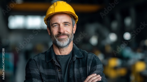 Industrial engineer in safety gear, confident and focused, representing modern manufacturing expertise and workplace safety.
