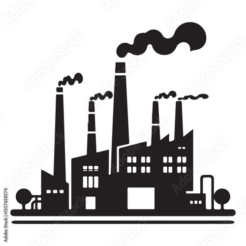 Industrial Factory Complex Vector Illustration with Smoking Chimneys