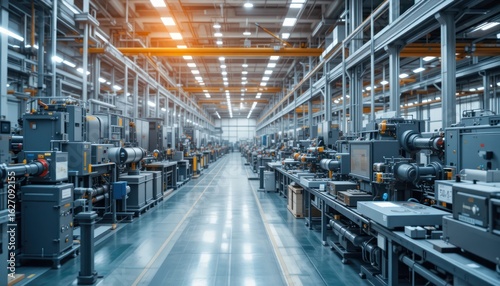Industrial Factory Interior: Modern Manufacturing Assembly Line