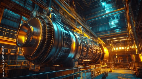 Industrial Gas Turbine Engine in a Modern Power Plant. AI generated illustration