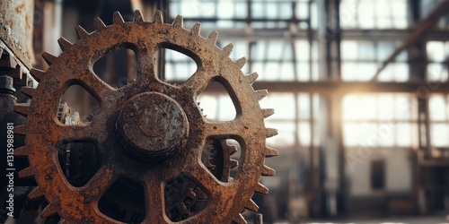 Industrial Gear in Abandoned Warehouse with Sunlight Streaming In