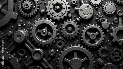 Industrial gears in close-up, emphasizing mechanical complexity.