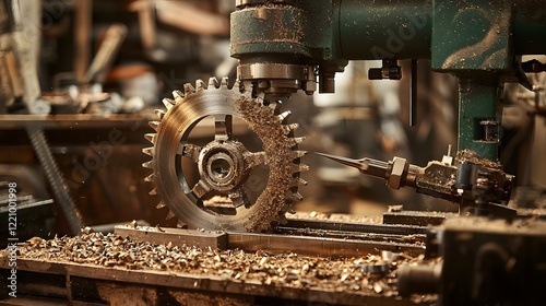 Industrial Gearwheel Shaping with Advanced CNC Machinery in Clean Workshop Environment