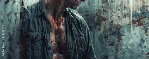 Industrial grunge portrait, featuring industrial textures and gritty urban elements for an edgy look, hyperrealistic 4K photo.