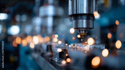 Industrial laser cutting process producing sparks in a manufacturing facility during work hours