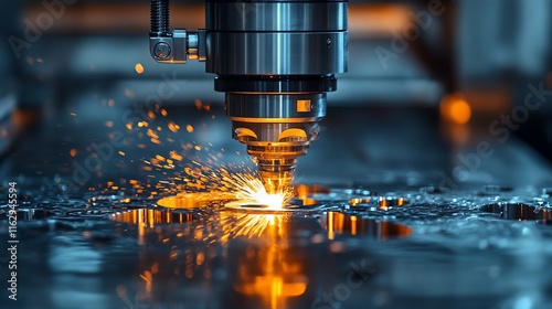 Industrial Machine Precisely Cuts Metal Sparks Fly