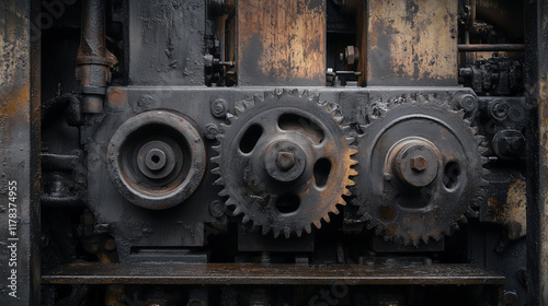 Industrial machinery and engineering mechanism with gears and cogs at work showcasing precision manufacturing technology