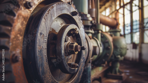 Industrial machinery close-up showcasing the intricate details and textures of mechanical components.