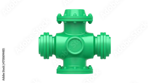 Industrial pipe fitting green metal connector plumbing cross mechanical equipment isolated engineering