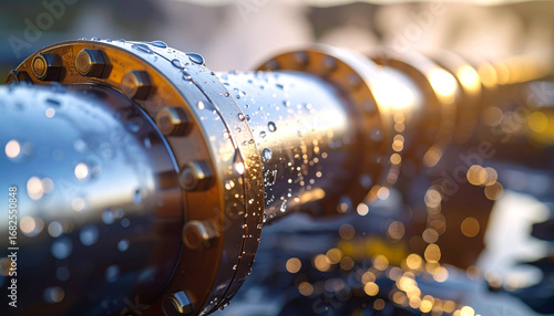 Industrial Pipeline: The detailed image presents an industrial pipeline, showcasing engineering and infrastructure, glistening with droplets and capturing a sense of strength and precision
