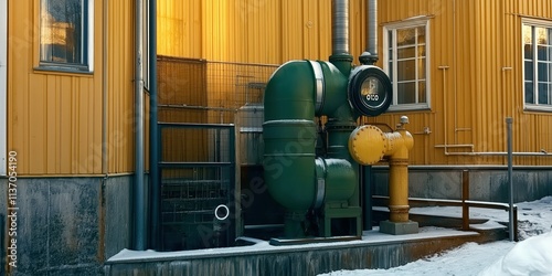 Industrial pipes and building exterior